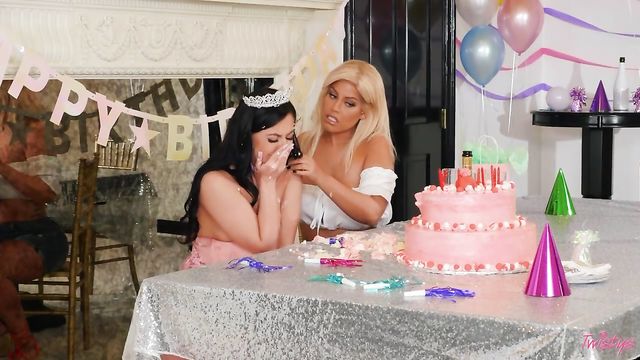 Description:It's Whitney Wright's favorite day of the year - her birthday! She's looking so sweet in a pink dress and tiara, she's got a big yummy cake and she's even decked out the apartment with birthday decorations. What could go wrong? Only every birthday princess' worst nightmare - nobody shows up! Whitney's patient at first, but soon enough her tits are out and she's destroying her birthday cake with her own two hands. That's when curvy blonde Bridgette B walks in. She's shocked to see her girlfriend in such disarray, but Brigitte knows just how to cheer her beloved hottie right up - with messy, sloppy hardcore, featuring fucking Whitney's butt with a dildo! Bridgette sure knows how to put a smile on Whitney's pretty face, and sometimes what it takes is some seriously satisfying anal, titty sucking, and pussy loving!